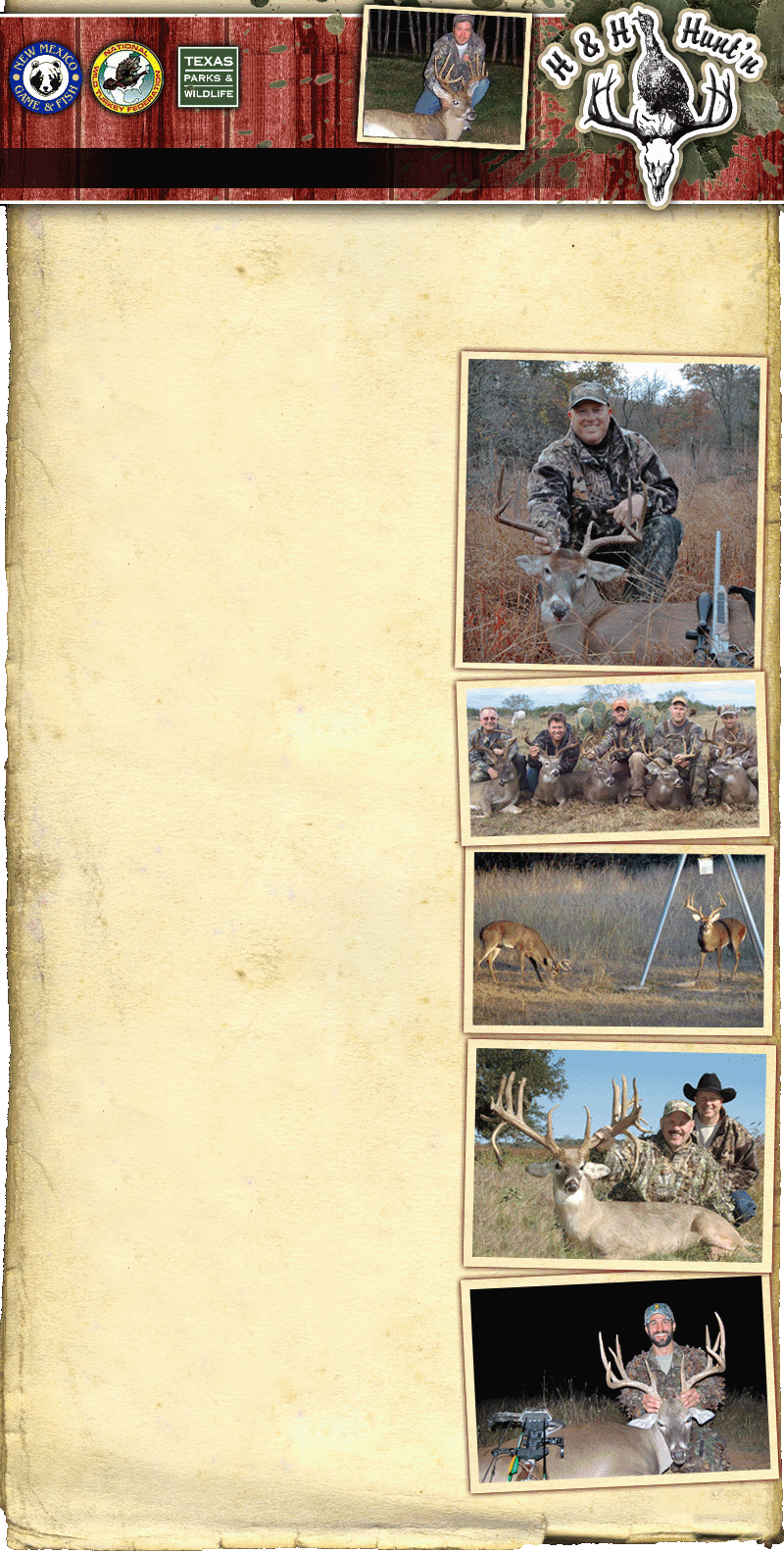 The Lone Star State is known for producing some of the Largest Trophy Whitetail bucks in the country. Did you know that over 10% of the white tail population of the World is in Texas. Imagine the chances of harvesting a true trophy of a life time. We have Trophy hunts and Management Hunts. If your looking for a Monster Boone & Crocket let us know we have deer that score up to 200 B.C. Your hunt in Texas can be arranged to meet your needs. H & H Hunt'n has some of the finest Ranches in Texas to hunt -- from 5 star to the limited budget hunter. We do our best to accommodate every hunter's needs.